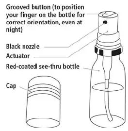 - Si vous n'utilisez pas votre Pumpspray nitrolingues dans les 3 mois, vous devrez le réapprovisionner en appuyant sur le haut du bouton rainuré jusqu'à 5 fois.