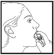 Étape 5. Appuyez fermement sur le haut du bouton Rainoved avec votre index pour libérer le spray sur ou sous votre langue. (Voir Figure D ). Le bouton rainuré peut vous aider à vous assurer que la cartouche est tournée vers la bonne position si vous administrez le spray dans l'obscurité.