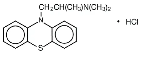 Chlorhydrate de prométhazine Un dérivé de phénothiazine est chimiquement désigné comme (±) -10- [2 (diméthylamino) propyl] propyl] phénothiazine monohydrochlorhydrate.
