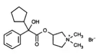 Le glycopyrrolate est un sel d'ammonium quaternaire avec le nom chimique suivant: 3 [(cyclopentylhydroxyphénylacétyl) oxy] -11-diméthyl pyrrolidinium bromure. Les formules moléculaires sont C 19 H 28 Brno 3 et le poids moléculaire est de 398,33.