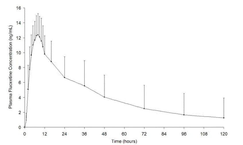 Le chlorhydrate de fluoxétine est un solide cristallin blanc à blanc cassé avec une solubilité de 14 mg / ml dans l'eau.