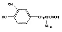 Levodopa Un acide aminé aromatique est un composé cristallin blanc légèrement soluble dans l'eau avec un poids moléculaire de 197,2. Il est désigné chimiquement comme («) -L-α-amino-β- (34-dihydroxybenzène) acide propanoïque. Sa formule empirique est C 9 H 11 NON 4 Et sa formule structurelle est: