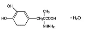 Carbidopa Un inhibiteur de la décarboxylation des acides aminés aromatiques est un composé cristallin blanc légèrement soluble dans l'eau avec un poids moléculaire de 244,3. Il est désigné chimiquement comme (-) - L-α-hydrazino-α-méthyl-β- (34-dihydroxybenzène) monohydrate d'acide propanoïque. Sa formule empirique est C 10 H 14 N 2 O 4 • H. 2 O et sa formule structurelle est:
