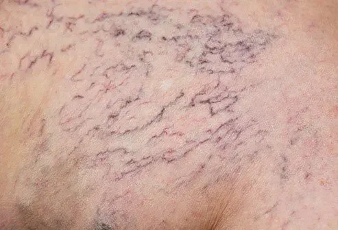 Les veines d'araignée sont des versions moins sérieuses de varices. Ils sont plus petits et ont une apparence de toile d'araignée. Les veines d'araignée apparaissent souvent sur les pieds des pieds et les chevilles. Ils sont superficiels et se trouvent juste sous la surface de la peau.