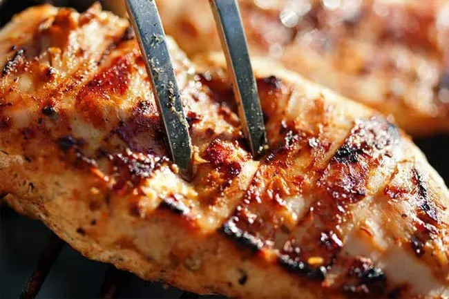 La poitrine de poulet sans peau est faible en graisse. Vous pouvez utiliser un frottement d'épices ou une simple marinade et le jeter sur le gril. Il est riche en protéines faibles en matières grasses et faibles en calories, en particulier par rapport aux hamburgers ou aux saucisses qui pourraient partager de l'espace sur votre grill.