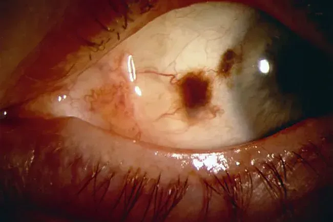 Le mélanome conjonctival est une croissance cancéreuse sur la conjonctive la membrane claire qui couvre la surface de l'œil et de la paupière intérieure. Il apparaît souvent comme une tache sombre ou rouge dans le blanc de votre œil. Il peut être grave et peut se propager à d'autres parties du corps à travers les ganglions lymphatiques ou la circulation sanguine. Si votre médecin le soupçonne, il pourrait prélever un échantillon du tissu à regarder au microscope pour aider à déterminer s'il s'agit d'un cancer.