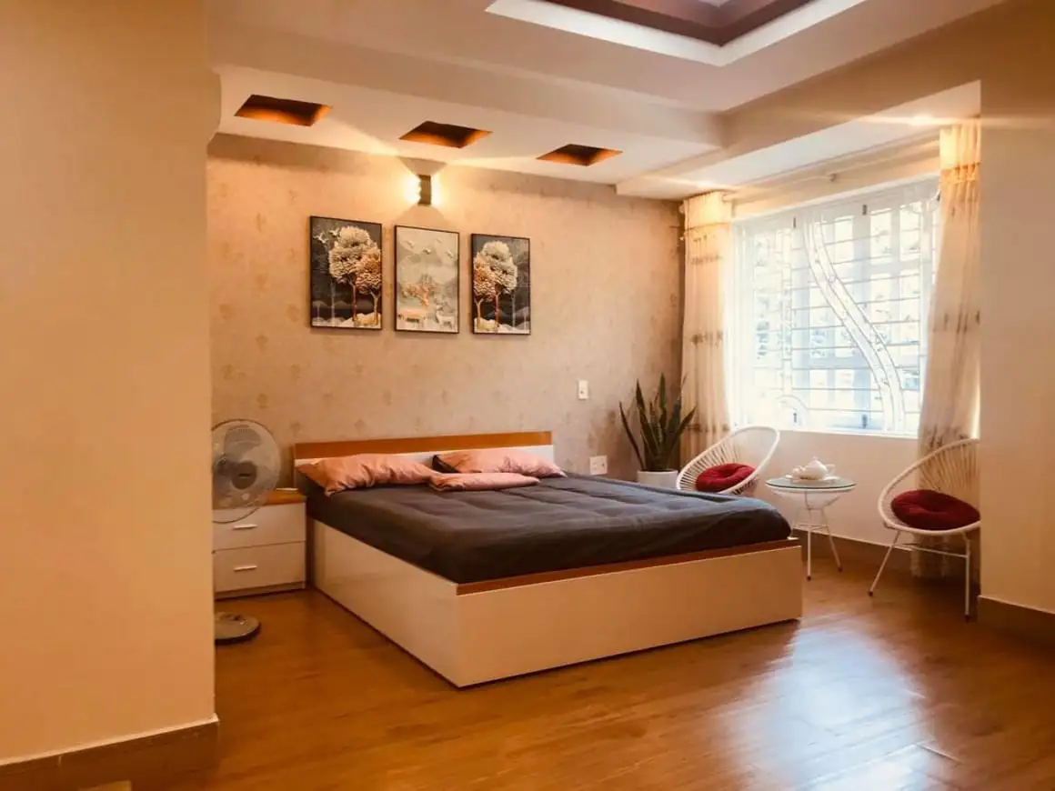 Ce magnifique appartement vous donnera envie de ne plus jamais partir ! Les intérieurs élégants créent un espace lumineux et relaxant avec beaucoup d'espace. Les murs sont décorés d'œuvres d'art de créateurs locaux et le mobilier robuste ajoute une ambiance luxueuse. Le centre de Haïphong est accessible à pied, ce qui vous permet de rester bien connecté avec le reste du Vietnam. Parfait si vous avez un itinéraire plus long.