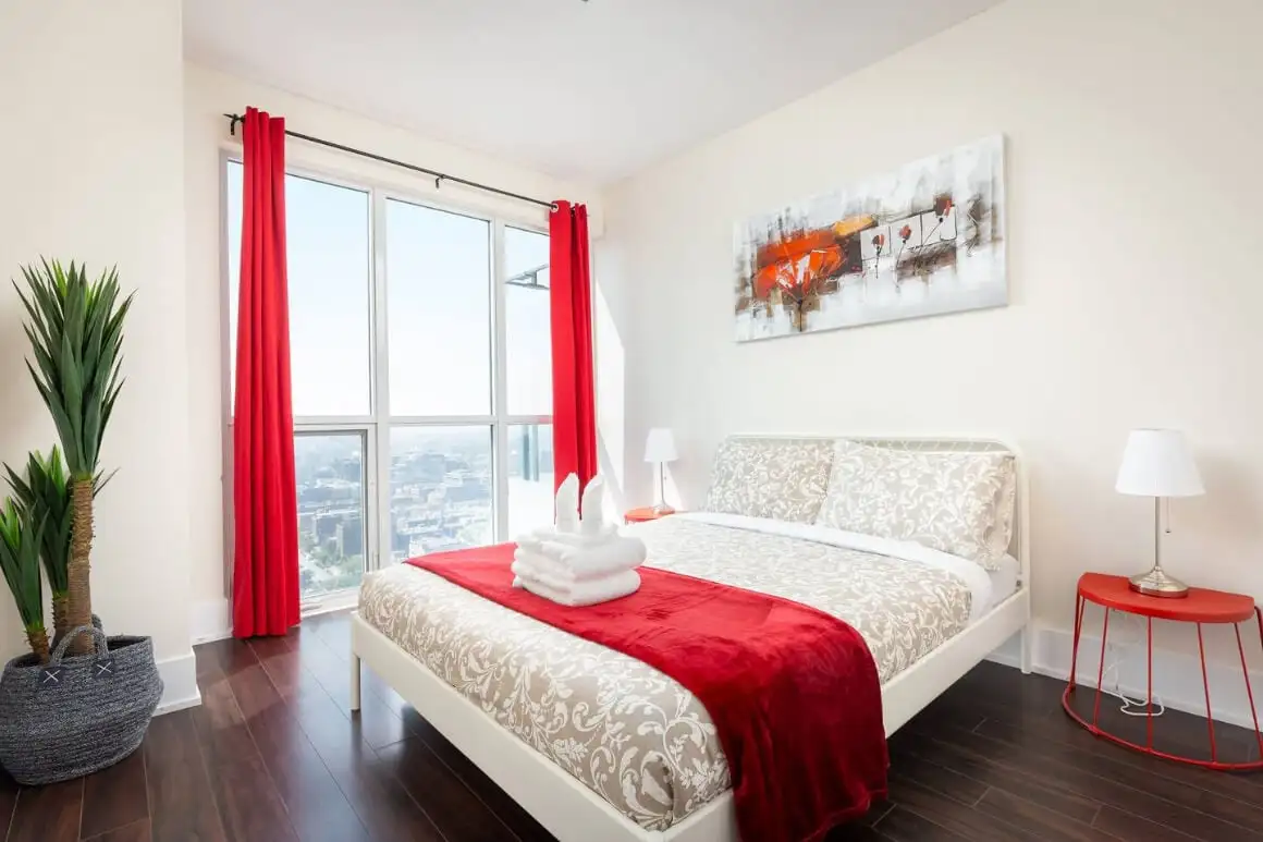 Ce magnifique appartement contemporain est notre Airbnb préféré au Canada et est parfait pour les couples ou les voyageurs seuls. Situé au 35ème étage, vous pourrez profiter d'une vue imprenable sur le paysage urbain. Vous trouverez également des magasins, des bars et des lieux de vie nocturne à votre porte.