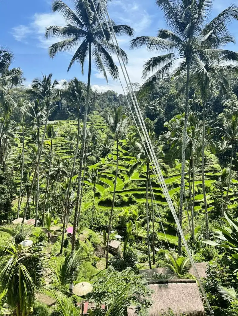 le frisson réputé de se balancer dans les rizières d'Ubud.