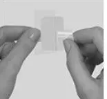 - Déchirurez la pochette au bord supérieur et un bord latéral. Décoller ouvrir la pochette en papier d'aluminium. Retirez doucement le contenu de la pochette en papier d'aluminium et jetez les morceaux de film supplémentaires au-dessus et en dessous du patch Xulane en prenant soin de ne pas séparer le patch du couvercle en plastique transparent.