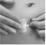 - Appliquez le côté collant du patch xulane pour nettoyer la peau sèche. Retirez l'autre moitié du plastique transparent et appliquez la patch entière sur votre peau.
