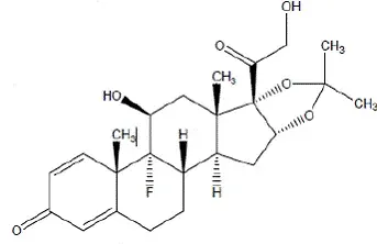 L'acétonide de triamcinolone est un corticostéroïde aux propriétés anti-inflammatoires et immunomodulatrices. Il se lie et active le récepteur des glucocorticoïdes conduisant à l'activation de facteurs de transcription anti-inflammatoires tels que les lipocortines et l'inhibition des voies de transduction inflammatoires en bloquant la libération de l'acide arachidonique et en empêchant la synthèse des prostaglandines et des leucotriénes.